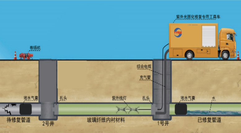 擁有紫外光固化修復(fù)技術(shù),真正100%非開挖內(nèi)襯修復(fù),對交通影響極??;固化全程CCTV監(jiān)控,可控性好,拉入到固化只需3-4小時即可完成。