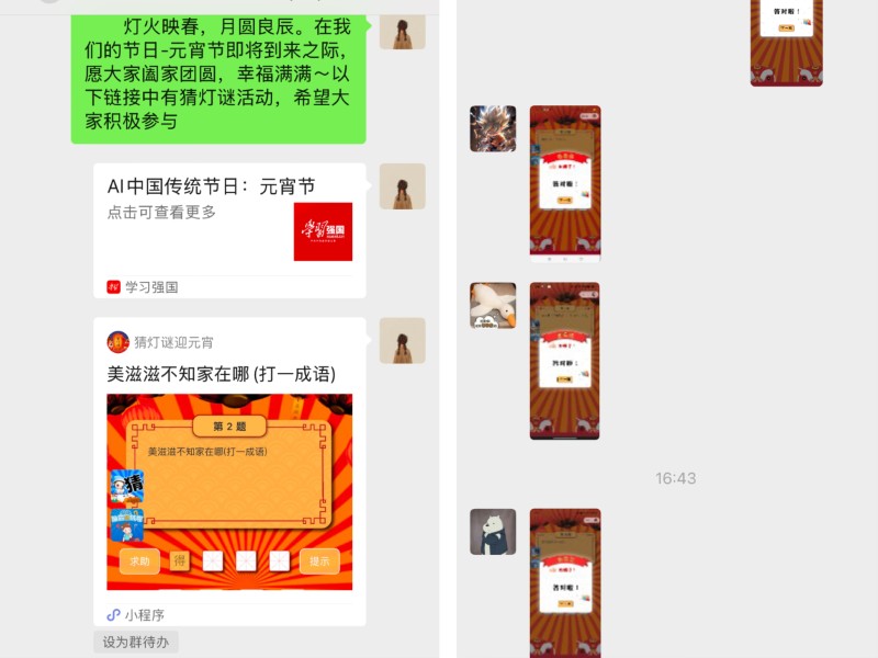 2月11日,八公司黨支部聯(lián)合太原城建工程有限公司黨支部、租賃公司黨支部、安裝公司黨支部、物業(yè)公司黨支部分別開展線上猜燈謎活動。謎題豐富多樣,涵蓋文化、體育、娛樂、年俗及筑路機(jī)械專業(yè)知識等多個領(lǐng)域,不僅讓職工在猜謎中深切感受了傳統(tǒng)節(jié)日的獨特魅力,還鍛煉了大家的思維能力和概括能力,營造出歡樂祥和、團(tuán)圓幸福的濃厚氛圍。