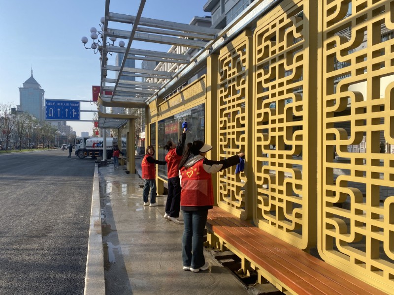 9月20日,四公司黨支部開展“管網(wǎng)改造添助力 志愿服務(wù)靚市容”志愿服務(wù)活動,志愿者來到新建路地下管網(wǎng)更新改造工程現(xiàn)場,對周邊的公交站臺、路口指示牌、路燈桿及護欄等設(shè)施進行擦洗和清潔,并清掃道路兩側(cè)的散落垃圾。通過此次活動,志愿者以熱情扮靚城市風(fēng)景,不僅展現(xiàn)市政人的良好精神風(fēng)貌,更為展示太原市文明、整潔、友好的城市形象貢獻堅實力量。
