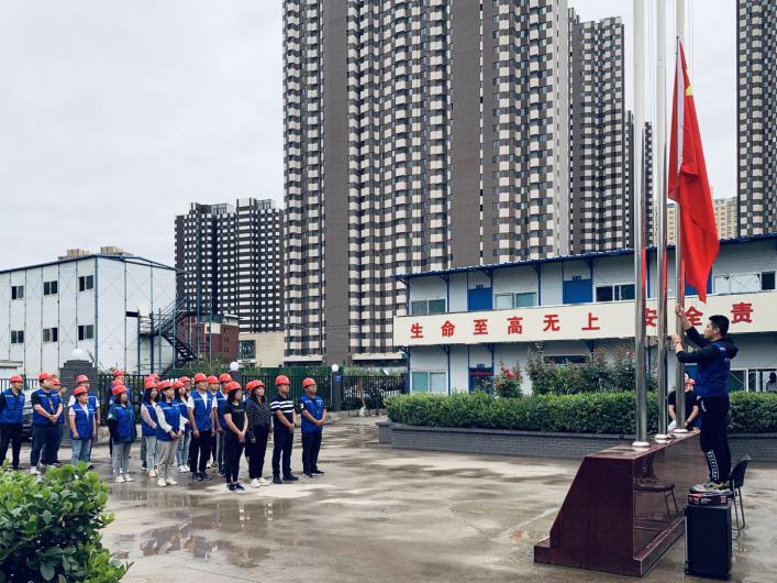 本次主題黨日活動(dòng)共分升旗儀式、主題演講、宣誓、工作匯報(bào)四個(gè)部分。在升旗儀式中,干部職工齊唱國歌,向國旗行注目禮。項(xiàng)目經(jīng)理武吉寶圍繞該工程的基本概況、施工組織、工程難點(diǎn)、施工節(jié)點(diǎn)四方面進(jìn)行了匯報(bào),并通過播放千峰路南延道路工程航拍視頻,全面直觀展示了工程基本情況。