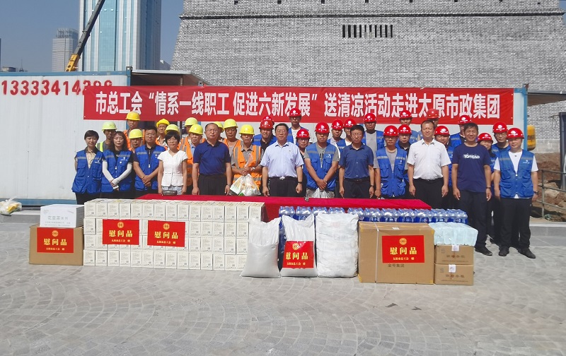7月30日,太原市總工會(huì)黨組成員、副主席汪倫一行來到太原市五一廣場(chǎng)改造工程市政道路改造及管網(wǎng)工程施工現(xiàn)場(chǎng)開展“情系一線職工促進(jìn)六新發(fā)展”送清涼活動(dòng)。集團(tuán)公司黨委副書記、副董事長(zhǎng)、總經(jīng)理溫慧武,黨委委員、監(jiān)事會(huì)主席、工會(huì)主席馮忠,總工程師高鴻參加了活動(dòng)。