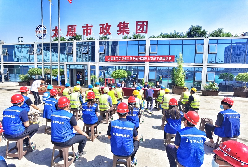 6月13日,太原市總工會(huì)首場“百名勞模工匠黨的創(chuàng)新理論宣講下基層活動(dòng)”走進(jìn)太原市政集團(tuán)千峰路南延建設(shè)工程雨水泵站及調(diào)蓄池施工項(xiàng)目部。市總工會(huì)黨組成員、副主席康衛(wèi)青,宣教部負(fù)責(zé)人張洪宇,集團(tuán)公司黨委委員、監(jiān)事會(huì)主席、工會(huì)主席馮忠,副總經(jīng)理、一公司經(jīng)理展志剛出席活動(dòng)。集團(tuán)公司職工、農(nóng)民工共50余人參加活動(dòng)。