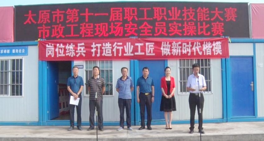 8月10日,由太原市總工會(huì)、太原市人社局、太原市經(jīng)信委、太原市科技局聯(lián)合主辦,太原市政建設(shè)集團(tuán)有限公司承辦的太原市第十一屆職工職業(yè)技能大賽市政工程現(xiàn)場(chǎng)安全員實(shí)際操作比賽,在太原市政集團(tuán)康樂街泵站項(xiàng)目部隆重舉行。太原市總工會(huì)經(jīng)濟(jì)技術(shù)部部長梁家齊,太原市職工技術(shù)交流站站長周彬,太原市住建委安全處處長李效忠,宣傳部副部長楊紅迎,太原市政集團(tuán)領(lǐng)導(dǎo)郝東輝、馮忠出席了開幕式。開幕式由黨委委員、監(jiān)事會(huì)主席、工會(huì)主席馮忠主持。
