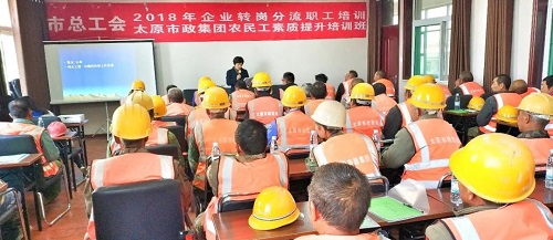 太原市政集團(tuán)作為建筑施工企業(yè),農(nóng)民工人數(shù)較多、流動(dòng)性大,已被太原市總工會(huì)選定為農(nóng)民工培訓(xùn)基地。在進(jìn)入施工旺季,工期緊、任務(wù)重,且農(nóng)民工自我保護(hù)意識(shí)差,遇到了施工安全等問題難以及時(shí)解決。為確保培訓(xùn)內(nèi)容全覆蓋,集團(tuán)公司工會(huì)結(jié)合太原市總工會(huì)2018年企業(yè)轉(zhuǎn)崗分流職工培訓(xùn)總體規(guī)劃,根據(jù)自身施工特點(diǎn),開展了多種形式的農(nóng)民工培訓(xùn)課程,目前參加培訓(xùn)的農(nóng)民工已達(dá)一千余人。