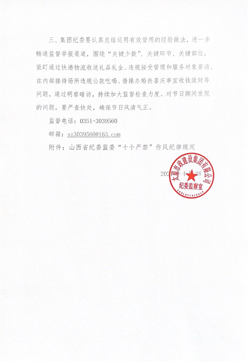 太原市政集團(tuán)關(guān)于“五一”、端午期間加強(qiáng)廉潔自律工作的通知