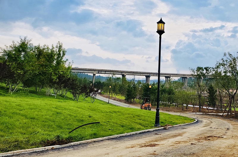 該工程屬于汾河四期治理美化工程的組成部分,要與園林、道路等同步施工,為呈現(xiàn)汾河美化整體效果,施工中時常出現(xiàn)設(shè)計變更情況,項目部結(jié)合施工實際,按照圖紙推進(jìn)施工。在三標(biāo)段施工中,設(shè)計要求將已做好燈基礎(chǔ)的草坪燈改為亮度更高、基礎(chǔ)更大的庭院燈,項目部組織施工人員在不破壞原有路燈基礎(chǔ)的情況下,再次擴(kuò)建開挖新的路燈基礎(chǔ),并在搭建更多模具的基礎(chǔ)上,通過澆筑混凝土保持其安全與穩(wěn)固。同時,因部分路段要增加休息平臺,項目部將已做好的管線破除,重新設(shè)置休息平臺的末端管線接頭,并嚴(yán)格按照設(shè)計規(guī)劃,改為繞平臺一圈后再做管線與基礎(chǔ),以確保汾河景觀的整體呈現(xiàn)效果。