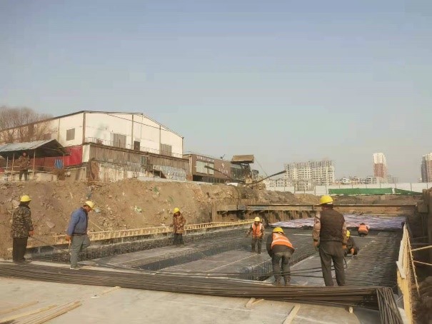 在雨水方涵的施工過程中,混凝土澆筑是整個(gè)節(jié)點(diǎn)施工的關(guān)鍵環(huán)節(jié),為確保頂板澆筑質(zhì)量,項(xiàng)目部嚴(yán)格按照施工設(shè)計(jì)要求,多措并舉,有效確保了施工質(zhì)量。為提高澆筑質(zhì)量,項(xiàng)目部主動協(xié)調(diào),聯(lián)系兩家混凝土廠商隨時(shí)供料,有效確保了混凝土澆筑的連續(xù)性;在模板澆筑過程中,嚴(yán)格按照澆筑、初凝、終凝的施工工序,在各個(gè)環(huán)節(jié)都做到精細(xì)把控;在混凝土出廠時(shí),要求必須對罐車進(jìn)行保暖措施,并在混凝土中摻半抗凍劑;在方涵支護(hù)過程中,在方涵中間用鋼斜撐進(jìn)行加固,確保在混凝土澆筑時(shí)模板不發(fā)生偏斜;在方涵模板鋼筋綁扎過程中,安排質(zhì)檢員隨時(shí)進(jìn)行監(jiān)督,對鋼筋型號、綁扎密度、支模的標(biāo)準(zhǔn)進(jìn)行了認(rèn)真檢查,有效確保了方涵質(zhì)量。