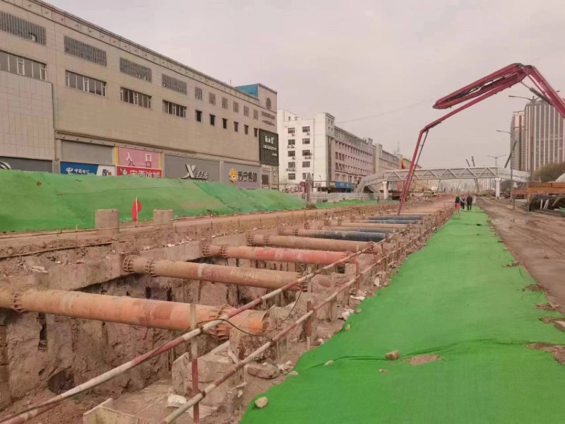 在雨水方涵施工過程中,項(xiàng)目部因地制宜、多措并舉,攻克多個(gè)“重難節(jié)點(diǎn)”,確保了管道施工的順利進(jìn)行。針對(duì)文興路口存在兩座暗涵影響雨水方涵的施工問題,項(xiàng)目部與相關(guān)單位認(rèn)真進(jìn)行技術(shù)交底,并通過多處開挖探坑,精確暗涵位置,積極與設(shè)計(jì)院溝通協(xié)調(diào),最終確定根據(jù)雨水方涵通過暗涵的先后順序,將兩座暗涵采用互相導(dǎo)改的方式,先后彼此接通導(dǎo)流,既滿足了雨水方涵的施工條件,同時(shí)又保證了暗涵的使用不受施工影響,確保了雨水方涵施工的順利推進(jìn)。在污水管道施工中,由于部分路段距離建筑物較近,常規(guī)開挖必然會(huì)影響周邊建筑,項(xiàng)目部同設(shè)計(jì)院認(rèn)真溝通協(xié)調(diào),最終對(duì)污水管道采用頂管的施工方法進(jìn)行作業(yè),既節(jié)省了舊管線遷改的時(shí)間,同時(shí)減小了明挖溝槽對(duì)周邊建筑物穩(wěn)定性的影響。