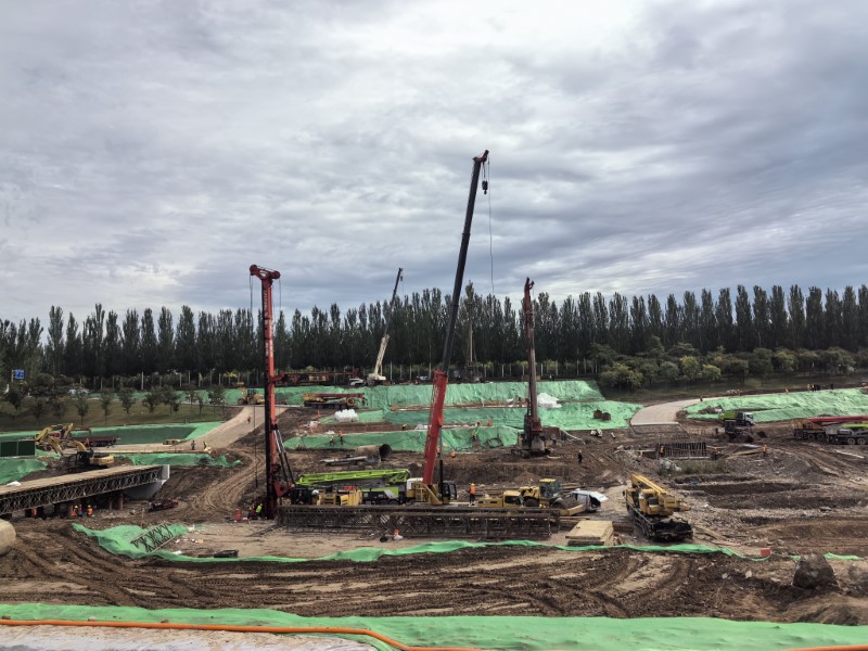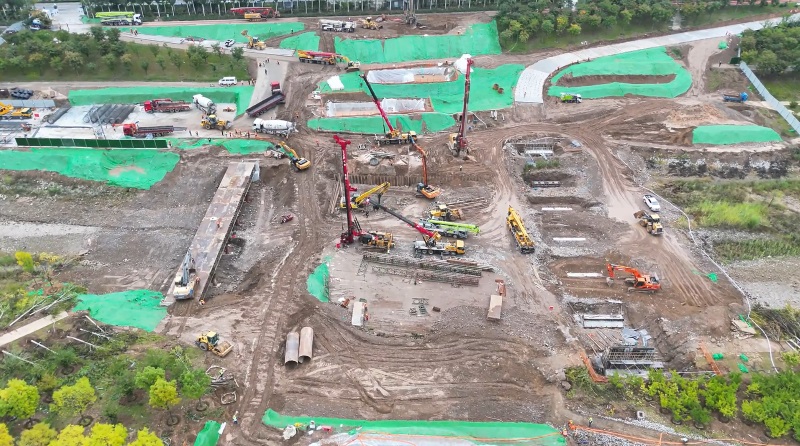 幸福橋設(shè)計(jì)為一座跨汾河大橋。項(xiàng)目部根據(jù)工程特點(diǎn),將工程劃分為東西兩個(gè)工區(qū),分解關(guān)鍵節(jié)點(diǎn)工期目標(biāo),拆分成一般節(jié)點(diǎn)工期,再細(xì)化為每周、每日的進(jìn)度計(jì)劃,層層細(xì)化,層層落實(shí)。同時(shí),項(xiàng)目部安排道排、橋梁等專業(yè)施工隊(duì),通過(guò)組織流水施工作業(yè),減少交叉作業(yè)影響,保證各工作面既滿負(fù)荷工作,又不互相干擾,加快施工進(jìn)度。由于該工程施工范圍位于汾河兩岸,地質(zhì)情況比較復(fù)雜,地下水位高,地下土質(zhì)為卵石,開(kāi)挖難度較大,施工人員先利用螺旋鉆機(jī)進(jìn)行引孔,再采用“止水鋼板樁+拉森樁”的方式,起到有效防水和支護(hù)的效果。在進(jìn)行橋梁基礎(chǔ)施工時(shí),項(xiàng)目部采用正循環(huán)鉆孔灌注樁的施工工藝進(jìn)行施工作業(yè),正循環(huán)鉆孔通過(guò)水泵壓送泥漿,從鉆桿柱中心進(jìn)入孔底并返出,能夠快速完成鉆孔作業(yè),操作方式簡(jiǎn)便,降低了施工難度?,進(jìn)一步加快施工進(jìn)度。針對(duì)工程重點(diǎn)難點(diǎn),項(xiàng)目部還專門制定了《深基坑安全專項(xiàng)施工方案》和《高大模板支撐體系安全專項(xiàng)施工方案》,邀請(qǐng)專家進(jìn)行論證,確保重點(diǎn)環(huán)節(jié)的施工質(zhì)量。