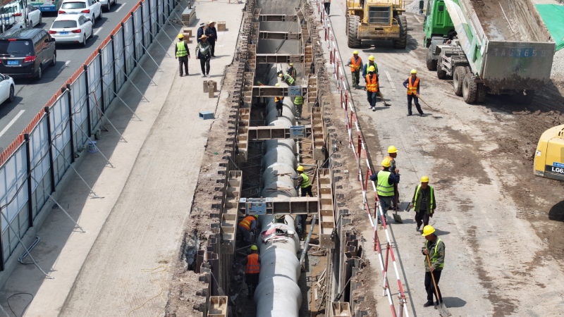 太原市政集團(tuán)堅決扛牢使命擔(dān)當(dāng),強(qiáng)化統(tǒng)籌、多方聯(lián)動,想盡一切辦法,克服一切困難,全面對標(biāo)看齊“迎澤標(biāo)準(zhǔn)”,堅持以全局觀念和系統(tǒng)思維謀劃推進(jìn)項目建設(shè),采用半幅封閉施工、平行流水作業(yè)方式,克服工程體量大、施工內(nèi)容繁重、建設(shè)工期緊張等困難與挑戰(zhàn),一體推進(jìn)道路、管線、照明、沿線景觀等建設(shè)任務(wù)。項目伊始,規(guī)劃“導(dǎo)航圖”,研討節(jié)點安排、工序銜接、資源配置等關(guān)鍵環(huán)節(jié),制定十余套專項施工方案,優(yōu)化組織設(shè)計,形成管理閉環(huán);繪制“進(jìn)度表”,建立分級負(fù)責(zé)、動態(tài)調(diào)整的進(jìn)度管控體系,提升9個工區(qū)自主管理效能,錨定工期目標(biāo),加快施工效率。施工過程中,掃清“攔路虎”,采用鋼板樁支護(hù)、分層開挖、放坡開挖工藝,克服地下管線復(fù)雜、開挖深度大、地下水高等難點,確保管網(wǎng)升級與地鐵運營和諧并行;保持“攻堅態(tài)勢”,針對重難點部位,提前制定專項方案,全部進(jìn)行技術(shù)交底,著重加強(qiáng)安全、質(zhì)量管控,形成高效施工態(tài)勢。注重以人為本,提升“施工溫度”,細(xì)化各項便民、利民措施,最大限度降低對市民日常生活的影響,保障通行需求;擦亮“市政名片”,開展道路清理志愿服務(wù)活動,用實際行動為城市“美容”,展現(xiàn)國企擔(dān)當(dāng)。