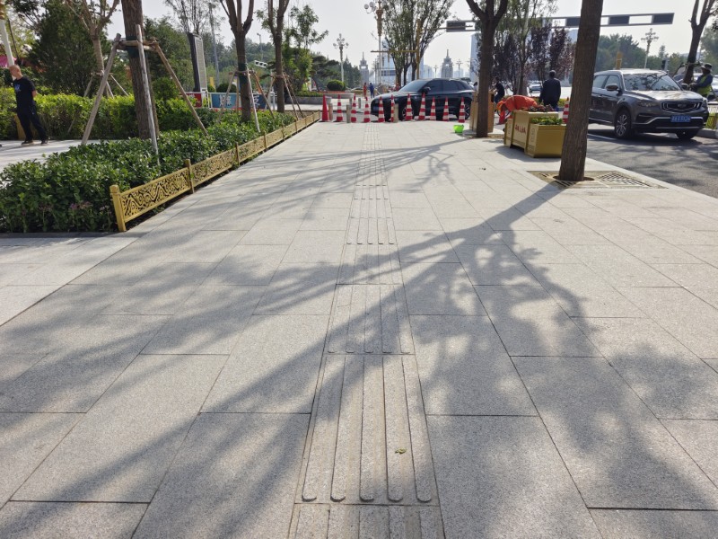漫步在嶄新的大街上,目光所及之處,皆是精益求精的印記。道路之舒,成于“毫米級(jí)”的精準(zhǔn)把控。施工期間,測(cè)量員們頂著烈日反復(fù)校驗(yàn)基準(zhǔn)線,施工人員緊盯碾壓遍數(shù)、實(shí)時(shí)檢測(cè)溫度變化,精準(zhǔn)調(diào)控機(jī)械參數(shù),細(xì)致觀察路面成型狀態(tài),以雕琢藝術(shù)品的嚴(yán)謹(jǐn),執(zhí)著于每一寸路面的平整度。如今,瀝青路面黝黑發(fā)亮,平整如鏡,為市民提供了平穩(wěn)舒適的出行體驗(yàn)。這背后,是無(wú)數(shù)次的測(cè)量、復(fù)核與調(diào)整,是對(duì)“毫米級(jí)”標(biāo)準(zhǔn)的執(zhí)著追求。路面之穩(wěn),源于看不見(jiàn)的“精細(xì)打磨”。以往容易產(chǎn)生異響和顛簸的檢查井蓋,如今,它們已與路面完美契合,渾然一體。市政人創(chuàng)新工藝,全程采用三米直尺嚴(yán)格檢測(cè)井具與瀝青路面的銜接平整度,對(duì)井周進(jìn)行精細(xì)找平加固,顯著提升了行車(chē)安全與舒適度。設(shè)施之雅,藏在細(xì)節(jié)里的“民生溫度”。道路品質(zhì)不僅在于行車(chē)體驗(yàn),更體現(xiàn)在人性化與美觀化兼具的附屬設(shè)施。人行道磚平整牢固,灌縫飽滿均勻;路緣石鋪設(shè)筆直如線,接縫打膠平滑嚴(yán)密;阻車(chē)樁全面清潔,堅(jiān)實(shí)穩(wěn)固;迎澤大街石磚鋪設(shè),描畫(huà)精細(xì),字跡清晰。游園新增的石桌石凳、柔和地?zé)舻仍O(shè)施,打造了溫馨舒適的開(kāi)放空間。建成后的迎澤大街(西段)“口袋公園”便民化、街角綠地景觀化、公交站臺(tái)智能化……已然成為市民閑庭漫步新去處。