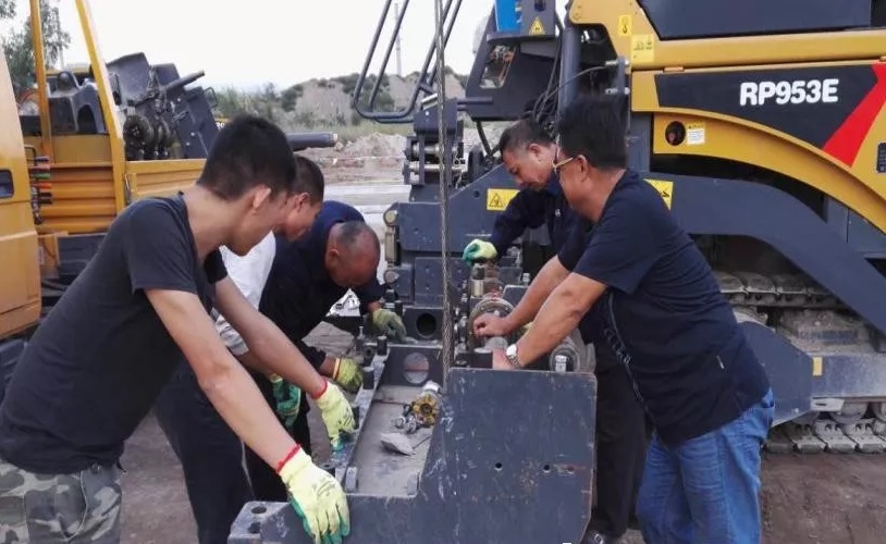 租賃公司設(shè)備維修組人員如同 “永動(dòng)機(jī)”,以攤鋪節(jié)點(diǎn)為指令,不分晝夜、隨時(shí)待命。截止目前,共完成攤鋪機(jī)拆裝達(dá) 100 余次,最多時(shí)一天拆裝 6 臺(tái)次。維修人員常常踏著月光奔赴現(xiàn)場(chǎng)進(jìn)行攤鋪機(jī)拆裝,伴著朝霞匆匆趕回單位進(jìn)行其他設(shè)備的搶修作業(yè),正是有了他們這些時(shí)刻保障攤鋪的幕后 “藍(lán)盾”,才確保了施工的順利進(jìn)行。同時(shí),租賃公司嚴(yán)把 “兩關(guān)”,把好機(jī)械調(diào)配關(guān),根據(jù)施工作業(yè)面、工程量要求,進(jìn)行機(jī)械設(shè)備數(shù)量配置;把好機(jī)械檢修關(guān),安全技術(shù)科人員加大對(duì)機(jī)械巡檢頻次,消除安全隱患。