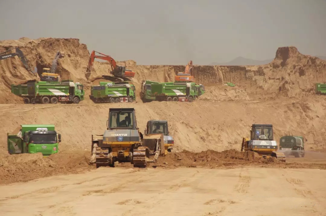 該工程于 4 月 21 日開(kāi)工建設(shè),由 “王牌軍” 一公司負(fù)責(zé)承建,作為集團(tuán)公司承建的土方填挖工程量最大的工程,參與人數(shù)之多、工程量之大實(shí)屬罕見(jiàn)。每天挖方量與回填量均能達(dá)到近 4 萬(wàn)方,最高時(shí)當(dāng)日挖方量可達(dá) 4 萬(wàn) 5 千方。