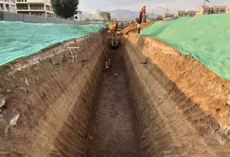 該工程道路兩側(cè)緊鄰沿線村莊的農(nóng)田、大棚,施工作業(yè)面狹窄,大量開挖土方因場地有限無法進(jìn)行放置,嚴(yán)重影響施工正常推進(jìn)。目前,項目部正在加快解決征地問題,積極與業(yè)主、村委會等溝通聯(lián)系,爭取盡快突破場地面積小的施工難點,擴(kuò)大施工作業(yè)面積,便于大量土方堆放,為后續(xù)施工贏得更多時間。在溝槽開挖施工時,由于工程全線平均溝槽深度為8米,在道路西村段深度達(dá)到9米,但因長臂挖機(jī)的機(jī)械臂長度為5米,無法達(dá)到溝槽底部進(jìn)行土方外運。項目部果斷采取有效措施,先利用一臺挖機(jī)進(jìn)行放坡作業(yè),將整體高度降低2.5米,在確保施工安全的前提下,再利用兩臺挖機(jī)下到下降高度處,接力倒運土方到路面的4臺鏟車進(jìn)行清運,保證整個土方外運工序銜接緊密、流水作業(yè),加快工程進(jìn)度。同時,因施工南段道路兩側(cè)位于農(nóng)作物種植地帶,土質(zhì)屬于濕陷性黃土,無法直接用于道路施工,為加強(qiáng)工程質(zhì)量管控,項目部針對整個施工斷面進(jìn)行了清表及換填處理,確保道路施工符合質(zhì)量標(biāo)準(zhǔn)。