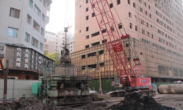 由于該地區(qū)都市廣場商場最初建設(shè)時(shí)基坑較深,地下遺留2到3排錨索在工程頂管頂進(jìn)范圍內(nèi),為后續(xù)施工造成了極大阻礙。為了解決施工難題,項(xiàng)目部多次組織專家進(jìn)行論證,經(jīng)過反復(fù)研究討論后,決定從中鐵一局天津分公司租用了兩臺(tái)360°全回轉(zhuǎn)鉆機(jī),利用鉆機(jī)垂直鉆到地下14米處,在下鉆過程中通過套管上的刀頭將錨索切斷,再利用履帶吊和抓斗將錨索抓出,為頂管工序“掃清”了障礙,順利解決了施工難題,為后續(xù)工程的順利推進(jìn)奠定了基礎(chǔ)。