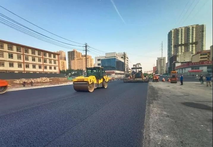 解放路改造工程二標(biāo)段瀝青混凝土下面層鋪設(shè)已過半