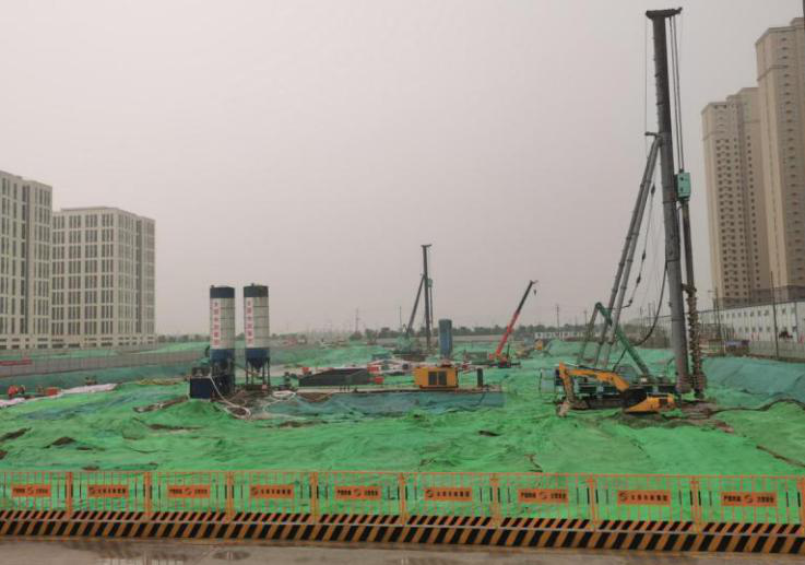 三公司承建的城南退水渠雨污水分流及道路改造工程地處老舊居民區(qū),工期緊、任務(wù)重,項(xiàng)目部從難處入手,攻克各個(gè)施工難題。在新澤巷施工中,污水管線(xiàn)設(shè)計(jì)終點(diǎn)位于新澤巷新建路交叉口,管道設(shè)計(jì)埋深為4米,原先設(shè)計(jì)將現(xiàn)狀城南退水渠采取大開(kāi)挖破除,待污水管道完成后對(duì)其進(jìn)行恢復(fù),但施工人員發(fā)現(xiàn)現(xiàn)狀城南退水渠承載著太原南部整體污水系統(tǒng),水流量非常大,且兩側(cè)分布多種管線(xiàn),大開(kāi)挖難度很大。項(xiàng)目部經(jīng)過(guò)比對(duì)優(yōu)化并在與設(shè)計(jì)及業(yè)主單位溝通后采取頂管施工方法。因新建路為城市主干道,交通流量大,有關(guān)部門(mén)要求封閉一側(cè)車(chē)道進(jìn)行施工,但該處地質(zhì)為流沙土質(zhì),土質(zhì)流動(dòng)性大、土體穩(wěn)定性差,且地下水位僅1.5米,項(xiàng)目部因地制宜,結(jié)合實(shí)際情況使用高壓旋噴樁進(jìn)行降水支護(hù),并配合交替使用水泥—水玻璃雙液漿和改性水玻璃漿液兩種注漿材料進(jìn)行加固處理,有效縮短了土體固結(jié)時(shí)間,改善了土體質(zhì)量,確保施工頂管工作坑的安全。同時(shí),因此段封路施工時(shí)間僅為10天,為在規(guī)定時(shí)間內(nèi)完成施工節(jié)點(diǎn),項(xiàng)目部決定采用沉井逆作法進(jìn)行施工,將沉井分階段進(jìn)行制作施工,采取由上至下的形式,逐層進(jìn)行土方開(kāi)挖、井壁鋼筋制作安裝、井壁模板安裝及井壁混凝土澆筑作業(yè),養(yǎng)護(hù)達(dá)到要求后再開(kāi)挖下一層土方,直至達(dá)設(shè)計(jì)要求深度封底,保證了工程按時(shí)間節(jié)點(diǎn)要求穩(wěn)步推進(jìn)。同時(shí),三項(xiàng)目部承建的通達(dá)街排水改造工程使用高壓旋噴樁進(jìn)行降水支護(hù),并采用了沉井逆作法進(jìn)行施工。
