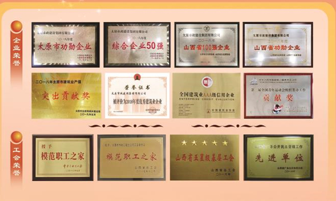 2019年,太原市政集團先后被評為全國優(yōu)秀施工企業(yè)、中國施工企業(yè)管理協(xié)會AAA級信用企業(yè)、山西省百強企業(yè)(第39位)、省骨干建筑業(yè)企業(yè)、省市優(yōu)秀建筑業(yè)企業(yè)、太原市企業(yè)50強(第25位)、太原市功勛企業(yè),獲得太原市建筑業(yè)產值突出貢獻獎、第二屆全國青年運動會組織籌辦工作貢獻獎等。太原市政集團承建的太原市松小線建設工程、新晉祠路道路改造工程、臥虎山快速路建設工程一標段、普國路道路改造工程一標段、西寨北街、西寨路道路建設工程獲得2019年度全省市政金杯示范工程獎……