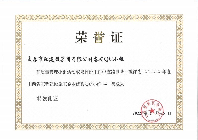 2022年度山西省工程建設(shè)施工企業(yè)優(yōu)秀QC小組二類成果_奮發(fā)QC小組