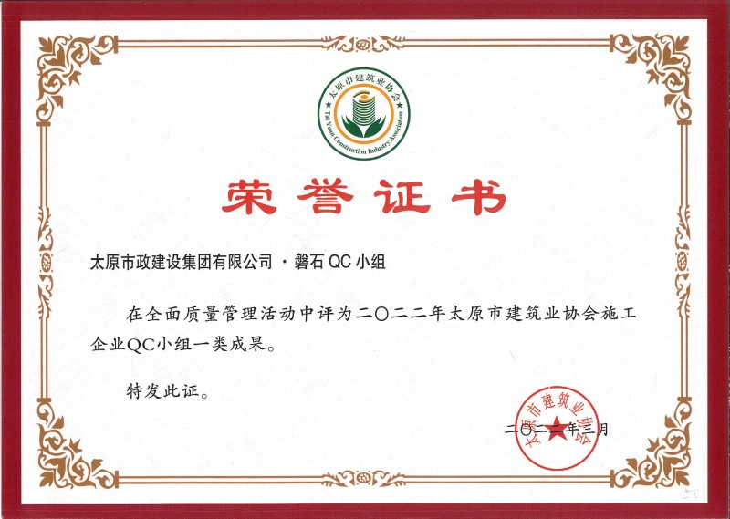 2022年太原市建筑業(yè)協會施工企業(yè)QC小組二類成果_磐石QC小組