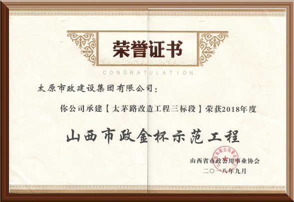 2018年度山西市政金杯示范工程