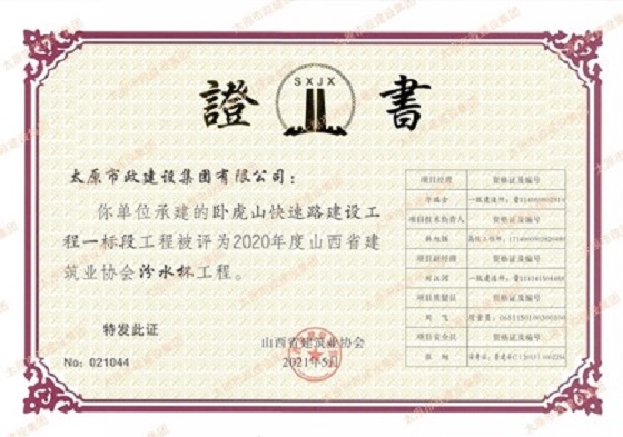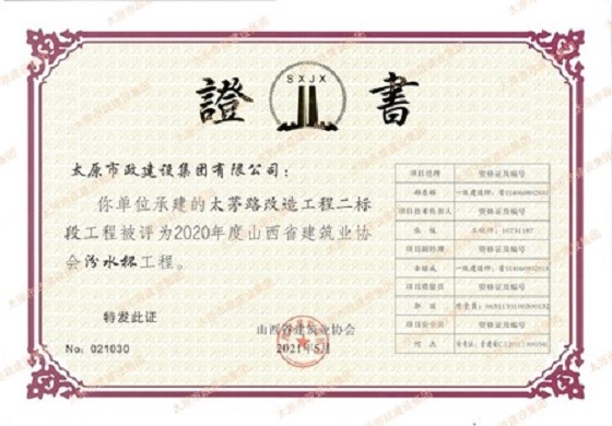2020年度汾水杯 太茅路改造工程二標段