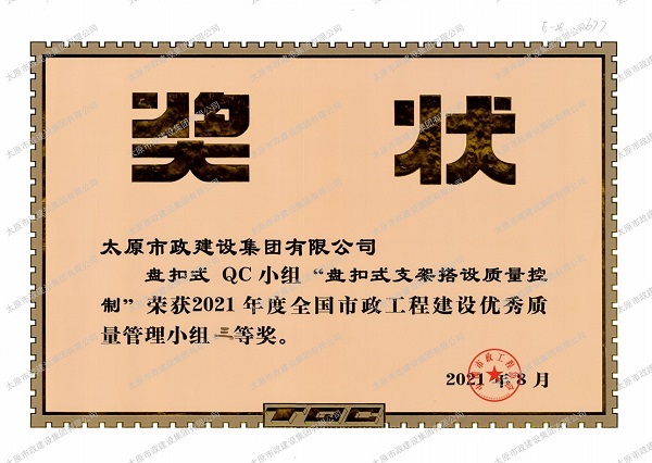 2021年度全國市政工程建設(shè)優(yōu)秀質(zhì)量管理小組三等獎